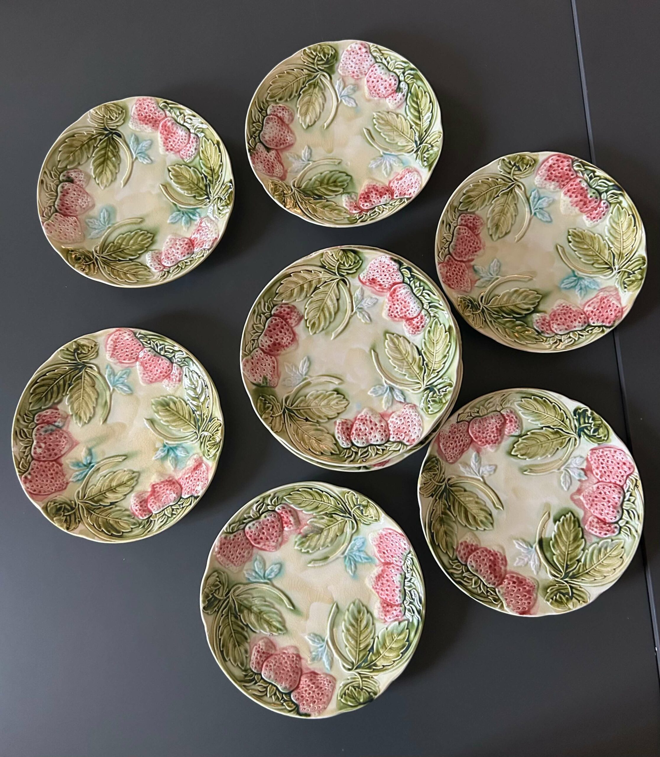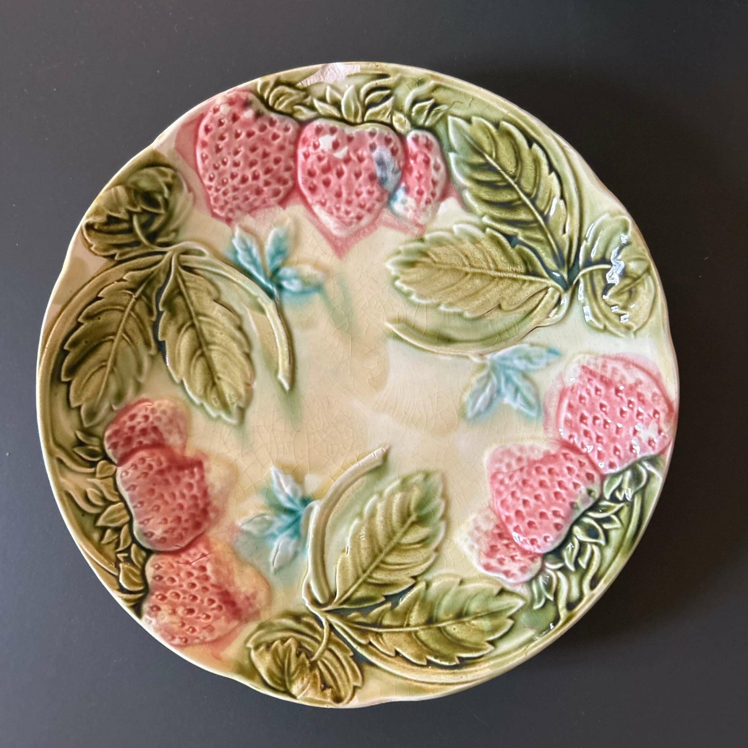 Assiettes à dessert en barbotine Onnaing à décor de fraise